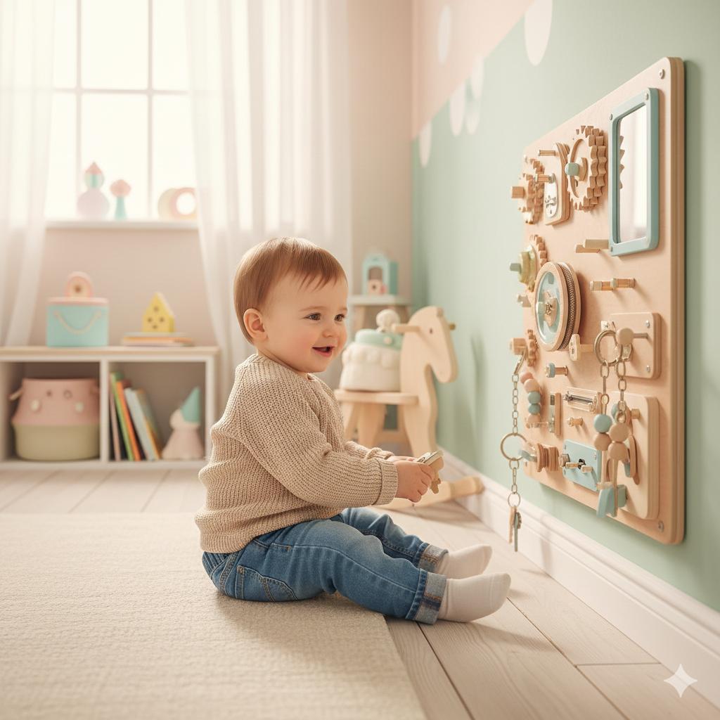Busy board e giochi che trasformano la curiosità in abilità: logica, motricità fine, primi numeri e colori.
